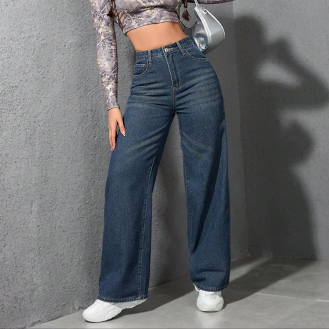 2025 femmes taille haute droite bleu foncé Denim pantalon décontracté élégant mode transfrontalière Europe Style coupe ajustée coloré