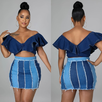 2025 taille haute épissage femmes demi-corps Denim jupe Europe US usine Stock haute qualité Sexy élastique décontracté crayon